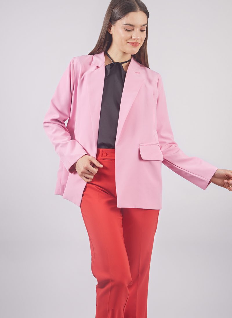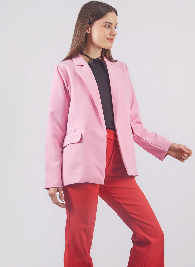 Blazer Basic – Pink Color de Dolcatta, una pieza statement que combina elegancia atemporal con audacia contemporánea. Confeccionado en un tejido de acabado mate y suave estructura, este blazer se convierte en el centro de todo tipo de look gracias a su color vibrante y su silueta sofisticada.